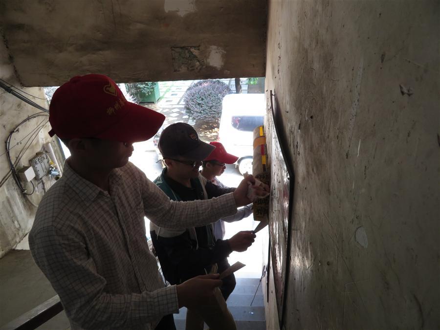 為結對社區(qū)居民營造整潔優(yōu)美、文明有序的居住環(huán)境是我們此次活動的主要內容。上午9點,我司黨員志愿者來到北雀社區(qū),與社區(qū)工作人員一起帶上清潔工具前往居民樓清理小廣告。