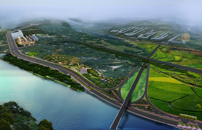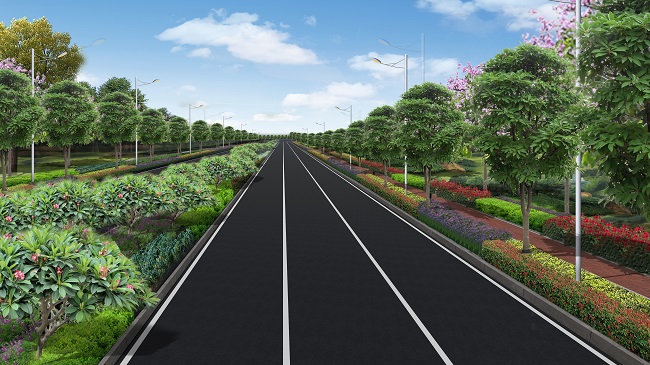 該項(xiàng)目位于田東縣濱江新區(qū)右江左岸,設(shè)計(jì)等級(jí)為城市次干路,設(shè)計(jì)速度40km/h,標(biāo)準(zhǔn)路幅寬40米,主干道路長(zhǎng)約2084米,A、B、C、D四條匝道長(zhǎng)約898米,主要建設(shè)道路工程、交通工程、巖土工程、排水工程、照明工程、景觀及綠化工程等,計(jì)劃總工期為365天。