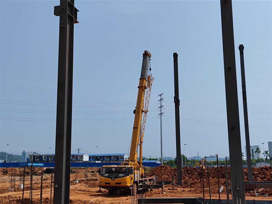 為了7#標準廠房順利封頂?shù)哪繕耍椖坎孔晕壹訅?,立下軍令狀,在項目掀起大干快上的趕工熱潮。項目部及時協(xié)調(diào)組織土石方、土建、鋼構、水電等施工隊伍進場,確保施工順利進行;管理人員與施工隊倒排工期,發(fā)揚“5+2”“白加黑”連續(xù)作戰(zhàn)精神,凝心聚力,奮力沖刺。