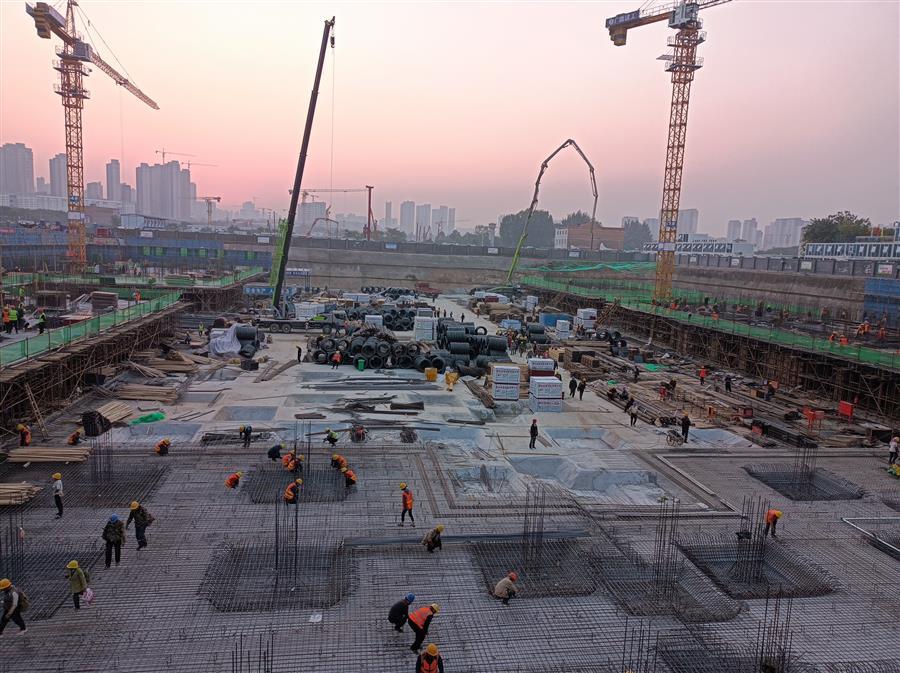 為加快推進項目建設,項目部一手抓防疫,一手抓建設。在做好疫情防控的基礎上增加作業(yè)人員、增加作業(yè)面,采取平面分區(qū)、分段流水交叉作業(yè)施工;加強各工序之間的有效銜接,充分利用施工面做到均衡施工;加大材料設備的投入,提前購置充足的機械設備,采取新材料、新技術減少耗材。項目每天進場的勞務人員達300余人次,有時單個施工區(qū)域就達40余人作業(yè)。項目管理人員團結(jié)協(xié)作、集體攻關,在施工現(xiàn)場日夜值守,吹響了“決戰(zhàn)四季度”的沖鋒號角。