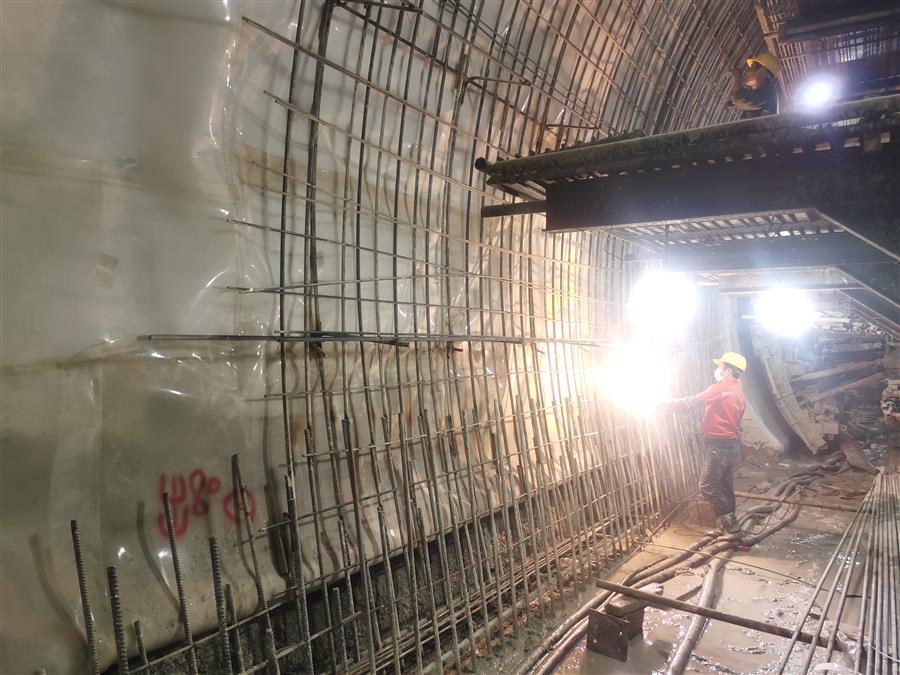 龍吉隧道作為三江縣龍吉大道北段擴建工程重要組成部分,全長約500米,隧道凈寬13.75 米,最大埋深約62米,為單洞單向三車道隧道,設(shè)計速度為60公里/小時。隧道建設(shè)過程中,受坡頂有高壓電塔、隧道出口端覆蓋層薄、洞內(nèi)巖層產(chǎn)狀變化大等因素影響,存在安全風險高、施工難度大等困難。為此,項目部針對隧道具體情況提前謀劃部署,科學組織,聯(lián)合業(yè)主、設(shè)計單位、專家進行施工論證,不斷優(yōu)化施工方案,加大人員和機械設(shè)備投入,動態(tài)調(diào)整施工工序,保證各項施工環(huán)節(jié)有序銜接。同時,項目部還嚴把安全質(zhì)量關(guān),認真落實各項安全生產(chǎn)規(guī)范要求,全面加強安全質(zhì)量管控,確保隧道施工規(guī)范、有序進行。