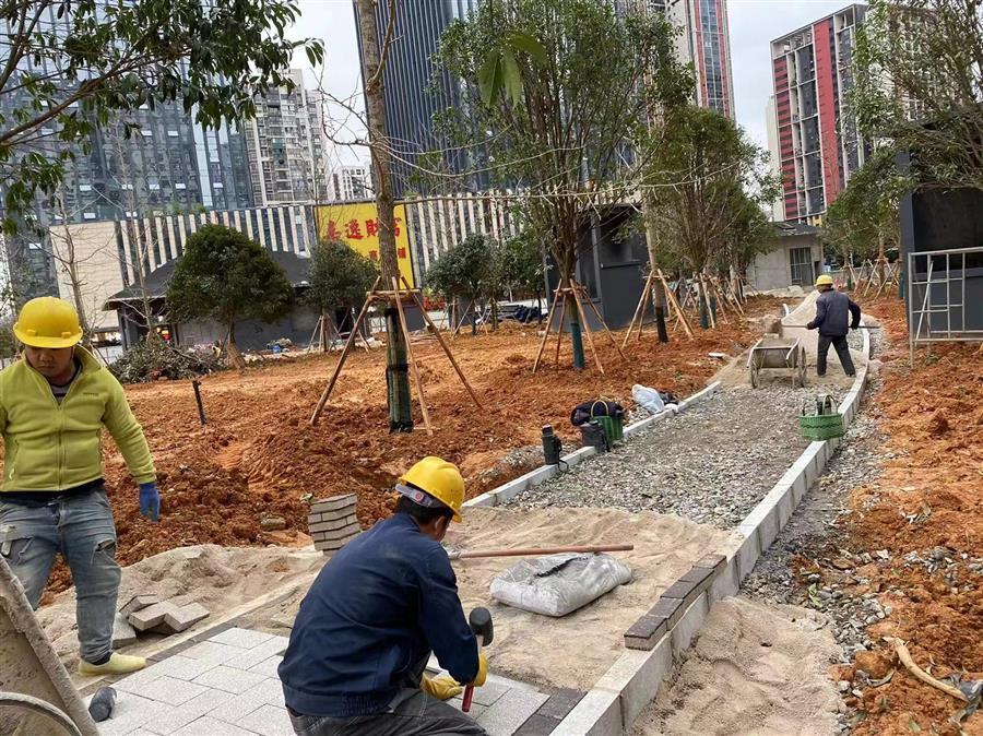 為如期實現(xiàn)建成目標,項目部積極協(xié)調各方力量,科學合理安排工序,在保證安全生產(chǎn)和施工質量的前提下,全力加快推進項目建設,爭取早日完成地面部分工程,達到開放條件。截至目前地下室框架已完成,室外給排水管道完成95%,路面路基整形完成100%,園林綠化完成80%,出入口裝飾裝修完成80%,地面鋪裝完成80%。