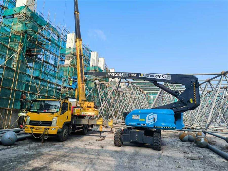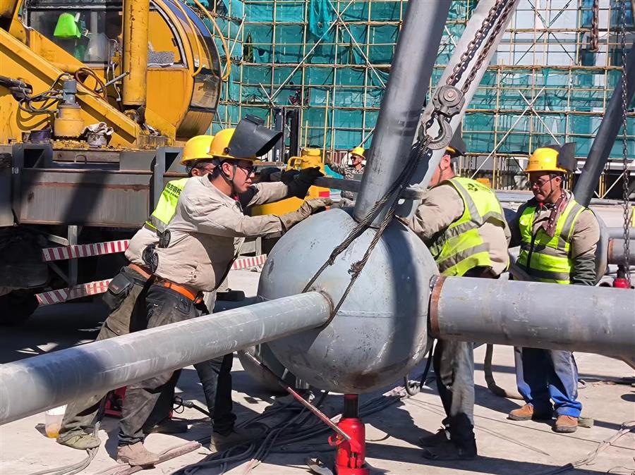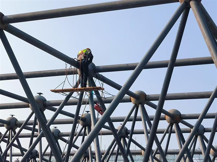 項(xiàng)目總建筑面積4.46萬平方米,建設(shè)內(nèi)容為文化會(huì)展中心和英德茶文化博物館(含紅茶研發(fā)中心、檢測(cè)中心和交易中心)等。目前,項(xiàng)目正在進(jìn)行網(wǎng)架拼裝、加焊、焊接囗打磨、鋼球刷漆等工作,鋼結(jié)構(gòu)施工進(jìn)度為65%。