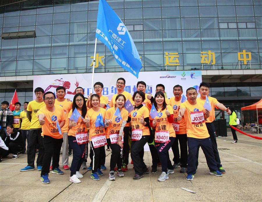 跑進2018,沖向勝利目標!60年鐵軍精神,看冶建崢嶸出擊!2018年1月1日,在公司工會的組織下,我司職工統(tǒng)一身著明黃色上衣,揮舞著冶建旗幟,雄赳赳氣昂昂來到柳州市靜蘭水上運動中心參加2018柳州市“邁向新年7+3”奔跑活動暨2018年全市元旦長跑比賽。
