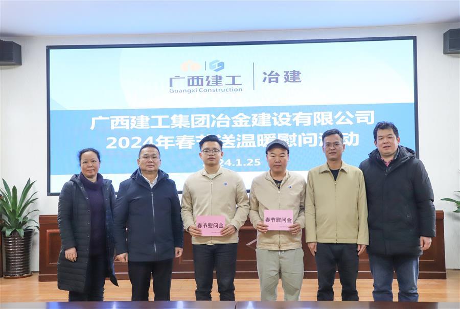 迎新春,送祝福,1月25日,冶建公司黨委書記、董事長(zhǎng)覃振華走訪慰問離休干部董德和,基礎(chǔ)分公司困難員工江龍威、黃積軍為他們送去組織的親切關(guān)懷,并送上慰問金和新春的祝福。