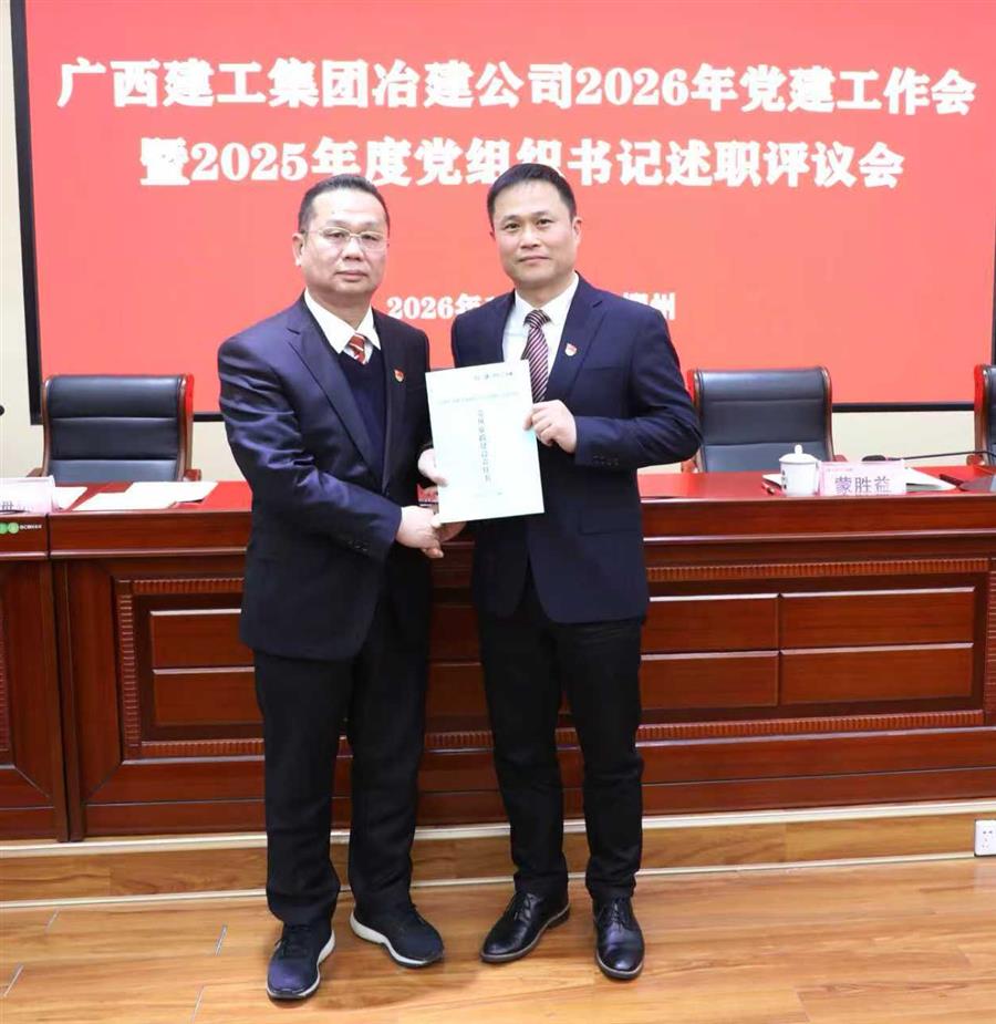 1月23日,冶建公司2026年黨建工作會暨2025年度黨組織書記述職評議會在第二會議室召開。公司黨委書記、董事長覃振華參加并講話,黨委副書記、總經(jīng)理蒙勝益?zhèn)鬟_(dá)集團公司2026年黨建工作會暨2025年度黨組織書記述職評議會精神,黨委副書記、紀(jì)委書記、工會主席賴海標(biāo)主持,領(lǐng)導(dǎo)班子成員廖立波、阮仁勝、韋克雪、葉益華參加。