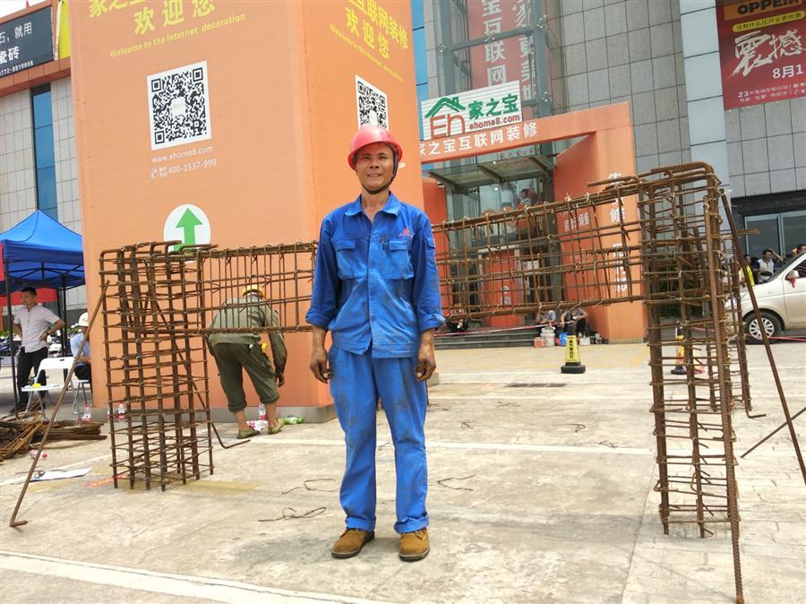 8月31日,在柳州家居建材博覽中心室外廣場上,一群頭戴安全,身著工裝的農(nóng)民工在各自忙碌著,不時傳來“叮叮?!变摻钆鲎猜暋ⅰ皣W嘩嘩”刨木聲、“咚咚咚”敲磚聲……伴隨著一片熱鬧的聲響,柳州市第四屆農(nóng)民工技能大賽暨柳州市第三屆農(nóng)民工家庭服務業(yè)大賽火熱舉行。