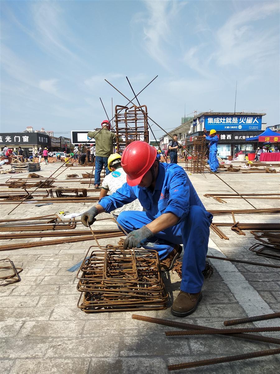 當天室外最高溫度達35℃,陽光曝曬,路面上飛揚的塵土清晰可見,參賽的農(nóng)民工選手們頭頂烈日,一絲不茍地完成比賽操作,較好地體現(xiàn)了他們的敬業(yè)精神與良好技能。