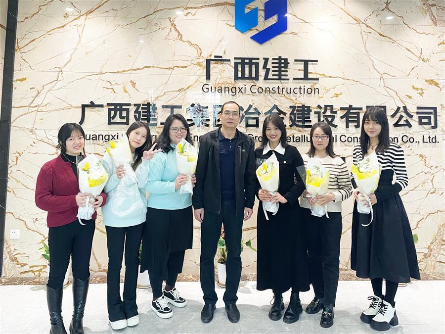 柳州市區(qū)農(nóng)村信用合作聯(lián)社潭中分社給冶建公司財務(wù)資產(chǎn)部女職工送上鮮花和節(jié)日祝福。