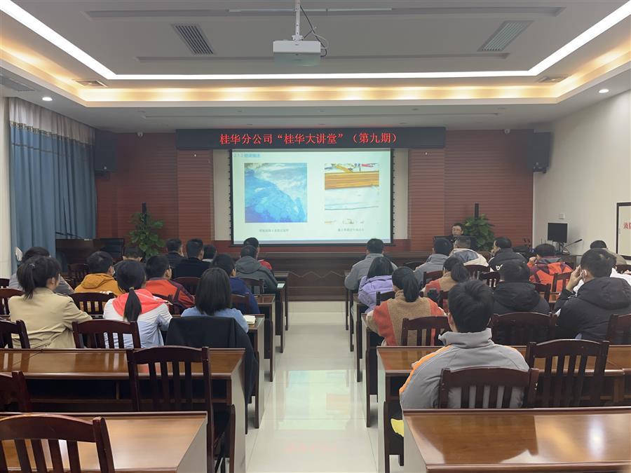 樊功翔在“桂華大講堂”為項(xiàng)目管理人員進(jìn)行培訓(xùn)