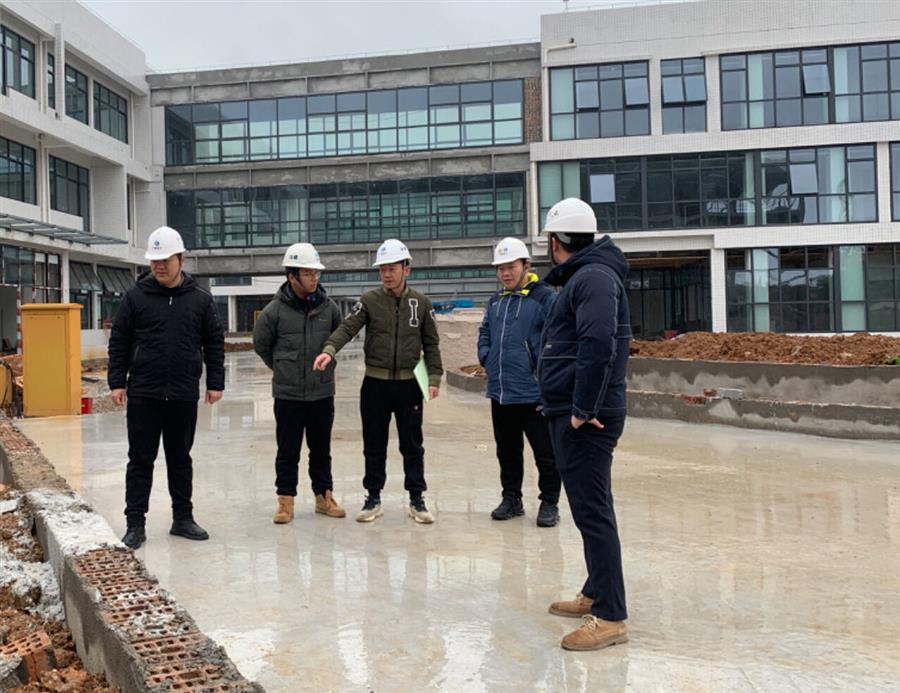 何登培(左一)到項(xiàng)目現(xiàn)場(chǎng)開展工作