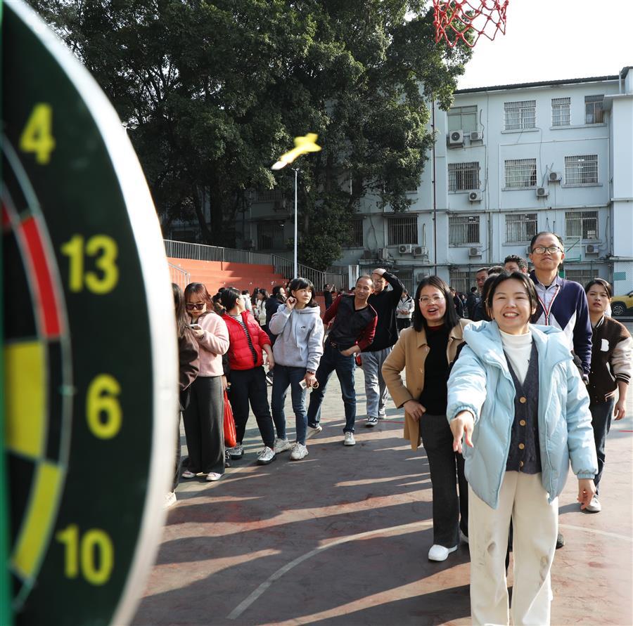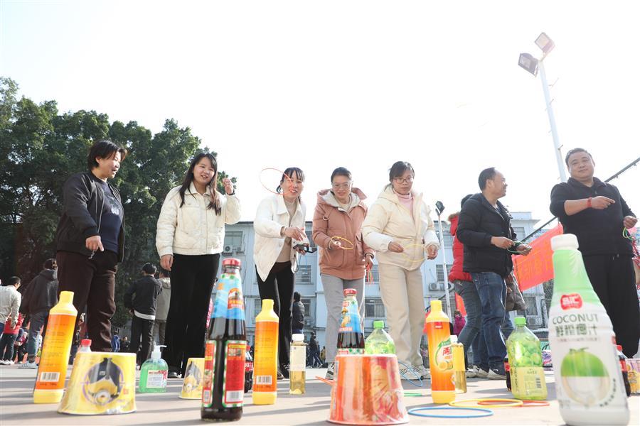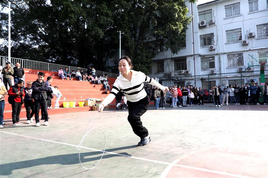 活動現(xiàn)場處處歡聲笑語、熱鬧非凡,一派歡樂祥和的景象。在集體項目團隊滾鐵環(huán)接力賽、單腿跑火車接力賽中,參與比賽的員工配合默契、銜接緊密、奮力爭先,場面激烈,觀眾的掌聲、笑聲、喝彩聲此起彼伏。游園活動還設置擲壺、飛鏢、滾球入桶、定點投籃、盲人擊鼓、套活雞活鴨等8項個人項目,大家有序排隊積極參與,樂在其中,收獲滿滿,為即將到來的蛇年新春增添了滿滿的喜氣。