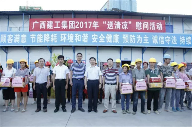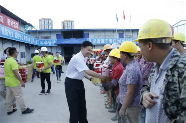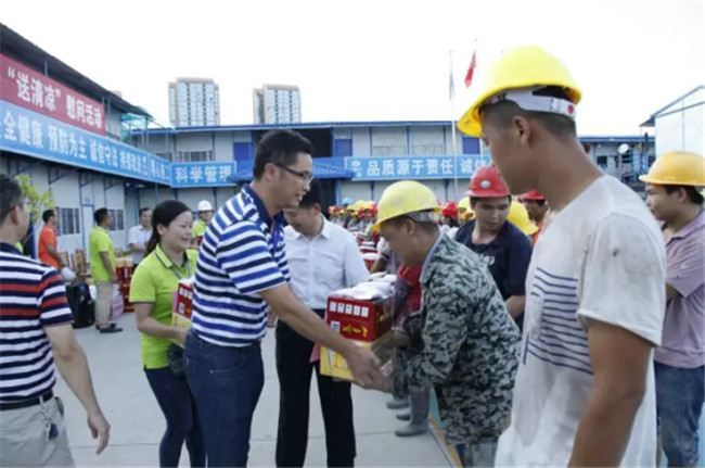 柳州市高新區(qū)科技園專家公寓樓工程由我司桂華分公司承建。8月7日下午,廣西建工集團副總經(jīng)理侯立林冒著高溫酷暑,專程從南寧前來項目建設現(xiàn)場給一線職工和農(nóng)民工“送清涼”,公司領導歐志永、賴海標、廖立波參加活動。130多份價值9000多元的慰問品,在十多分鐘的時間里,全部發(fā)放完畢。